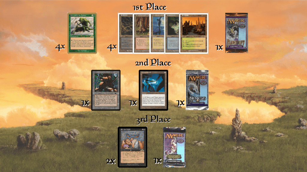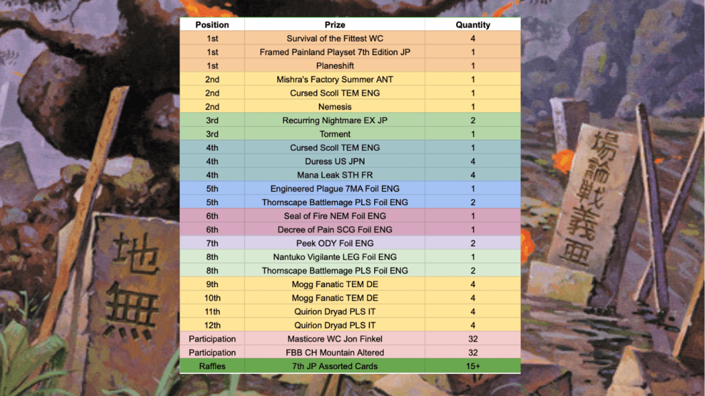 - El campeón recibirá un trofeo único, todas las painlands Séptima Edición en japonés enmarcadas.